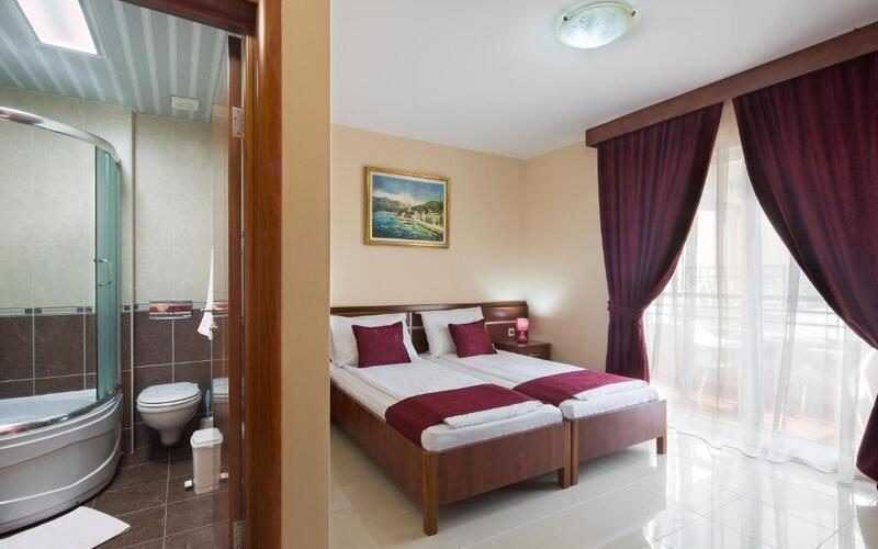 Napomena: Plaža je gradska, udaljena 500 m – sitni šljunak, pesak; ležaljke i suncobrani (uz doplatu), peškiri za plažu nisu obezbeđeni.