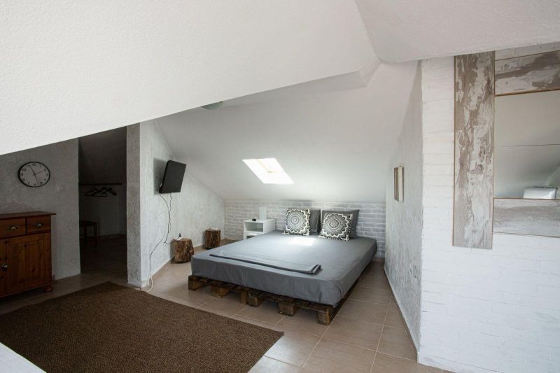 Mezoneta je na prvom spratu, ima dnevni boravak u donjem delu sa ugaonom sofom, gde može spavati dete, gore su 2 sobe, imaju po 1 bračni krevet, u centru krov je visine 2.10 sa kosim krovom. Studio je na prvom spratu, bračni krevet smart tv, klima, balkon, peškiri. Sve je novo, francuski ležaj.